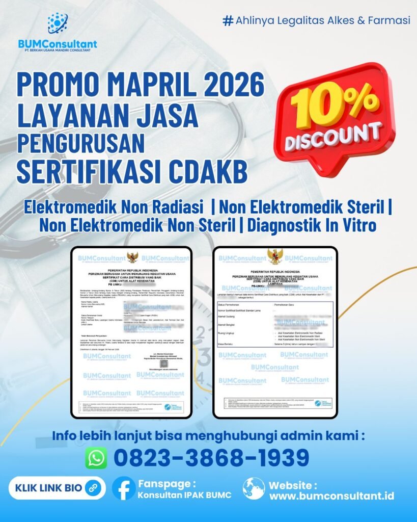 Jasa pendampingan profesional untuk membantu perusahaan dalam proses registrasi dan mendapatkan izin edar alat kesehatan agar produk dapat dipasarkan secara legal di Indonesia.