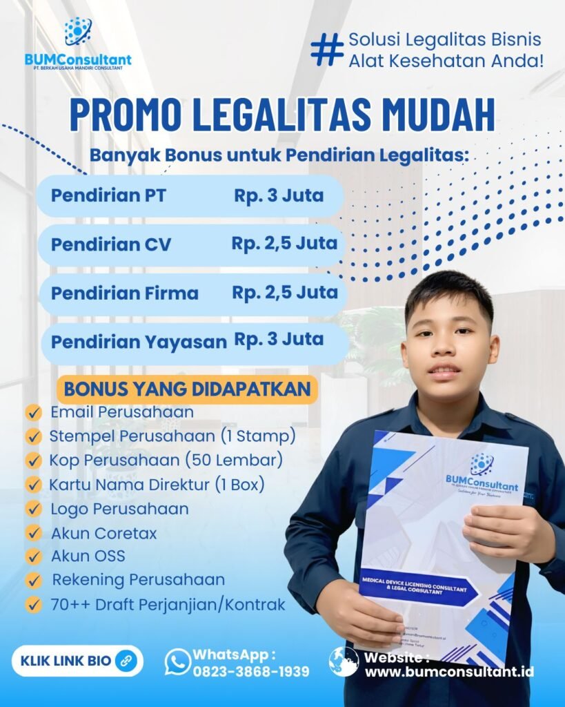 Kami menyediakan layanan konsultasi dan pendampingan perusahaan dalam memperoleh perizinan Alat Kesehatan, PKRT, dan Farmasi secara profesional, cepat, dan sesuai dengan regulasi. Serta melayani bantuan hukum dalam berbagai perkara.